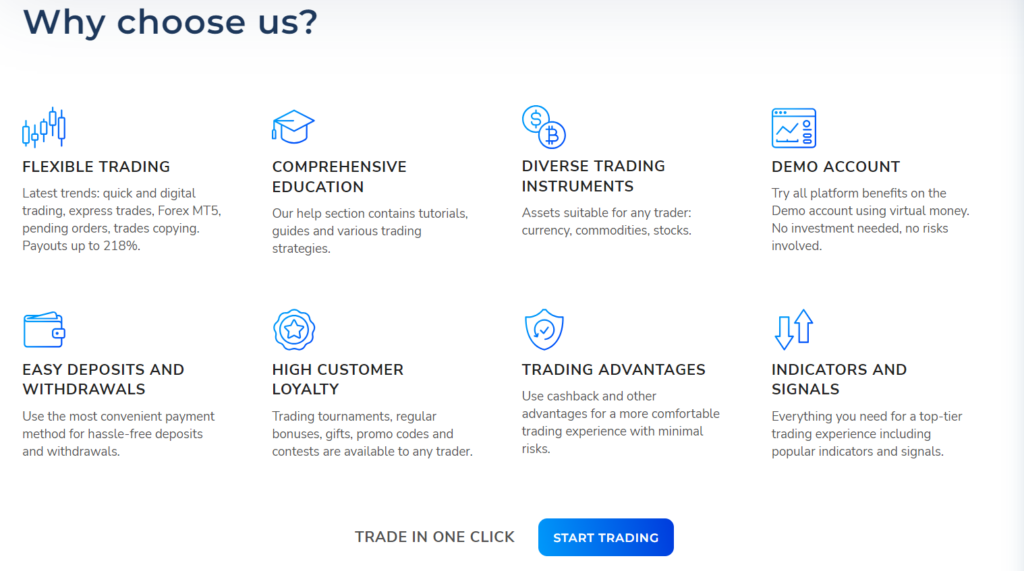 Another key factor is our low entry barrier—traders can start with as little as a $5 deposit, and we offer trades starting at $1. This accessibility is coupled with up to 90% returns on successful trades. On top of that, our demo account allows users to practice without any financial risk. We’re also fully regulated by the Mwali International Services Authority, so traders know their funds are secure.